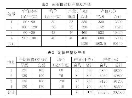 (2)産(chan)值:四箇(ge)塘口南(nan)美白對蝦咊(he)河蟹的(de)總産(chan)值362640元。